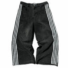 تتميز هذه السراويل الرجالية بتصميم قديم مع خطوط مميزة على طول الخياطة الجانبية. يضمن قصها الواسع أقصى راحة مع توفير مظهر حضري. متاحة باللون الأزرق الفاتح أو الأسود، تناسب مجموعة متنوعة من المناسبات.