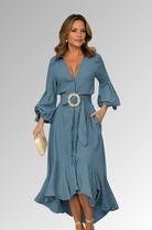 Tento středně dlouhý letní šaty mají lichotivý A-linii střih, který jemně obepíná siluetu. Jejich balónkové rukávy dodávají nádech charakteru a ženskosti. Ideální pro neformální i formální příležitosti.