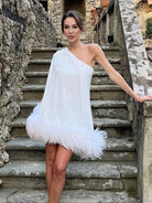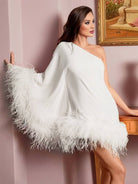 Αυτή η κοντή φόρεμα τύπου καμπάνα με έναν ώμο είναι ιδανική για ειδικές περιστάσεις. Ο μοναδικός της σχεδιασμός με μανίκια κάπα προσθέτει μια πινελιά κομψότητας. Ιδανικό για κοκτέιλ, χορούς ή γιορτές.