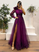 Αντζελίνα | Μακριά Φόρεμα Με Λουλούδια Σε Τούλι Με Σχίσμα – Κομψότητα Και Εκλέπτυνση