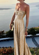 Αυτή η χρυσή μακριά φόρεμα είναι ιδανική για επίσημες εκδηλώσεις. Ο λαμπερός σχεδιασμός της αναδεικνύει τη σιλουέτα σας. Κατασκευασμένη με υλικά υψηλής ποιότητας, εξασφαλίζει άνεση και ανθεκτικότητα.