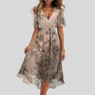 Elodie | Väljä Mekko Kukallisella Printillä Ja V-kolarilla
