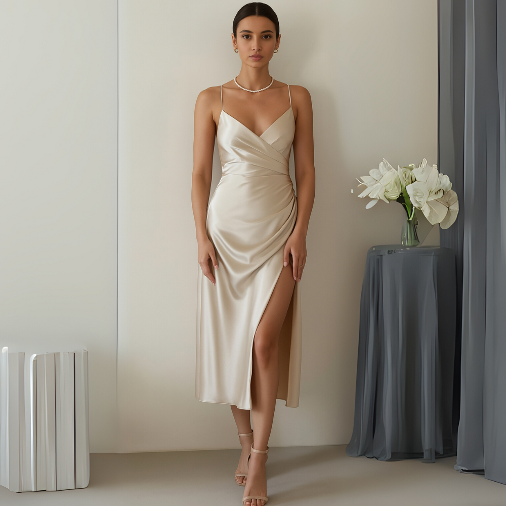 Giovanna | Robe Midi Fendue – Style Léger Et Bretelles Délicates