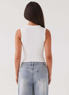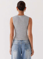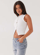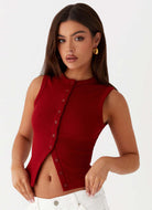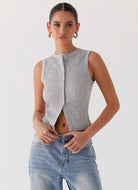 Ez a ujjatlan top egy karcsúsított, előnyös szabást ötvöz egy elegáns gombsorral. Könnyen kombinálható, alkalmas egy laza megjelenéshez és egy elegánsabb öltözethez is. Egy könnyű és divatos alapdarab a szép időszakra.