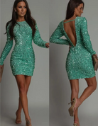 Questo abito aderente è decorato con paillettes scintillanti per un effetto glamour. Il suo design a schiena nuda aggiunge un tocco di sensualità. Perfetto per serate ed eventi speciali.