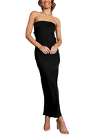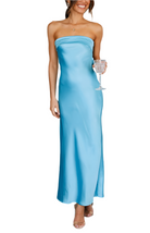 Questo abito lungo in satin senza spalline disegna una silhouette elegante e femminile. Fluido e leggero, è ideale per le serate estive, i matrimoni o le occasioni speciali. Il suo cadere setoso aggiunge un tocco di raffinatezza garantendo al contempo un comfort ottimale. Disponibile in diverse colorazioni per adattarsi a tutti gli stili.