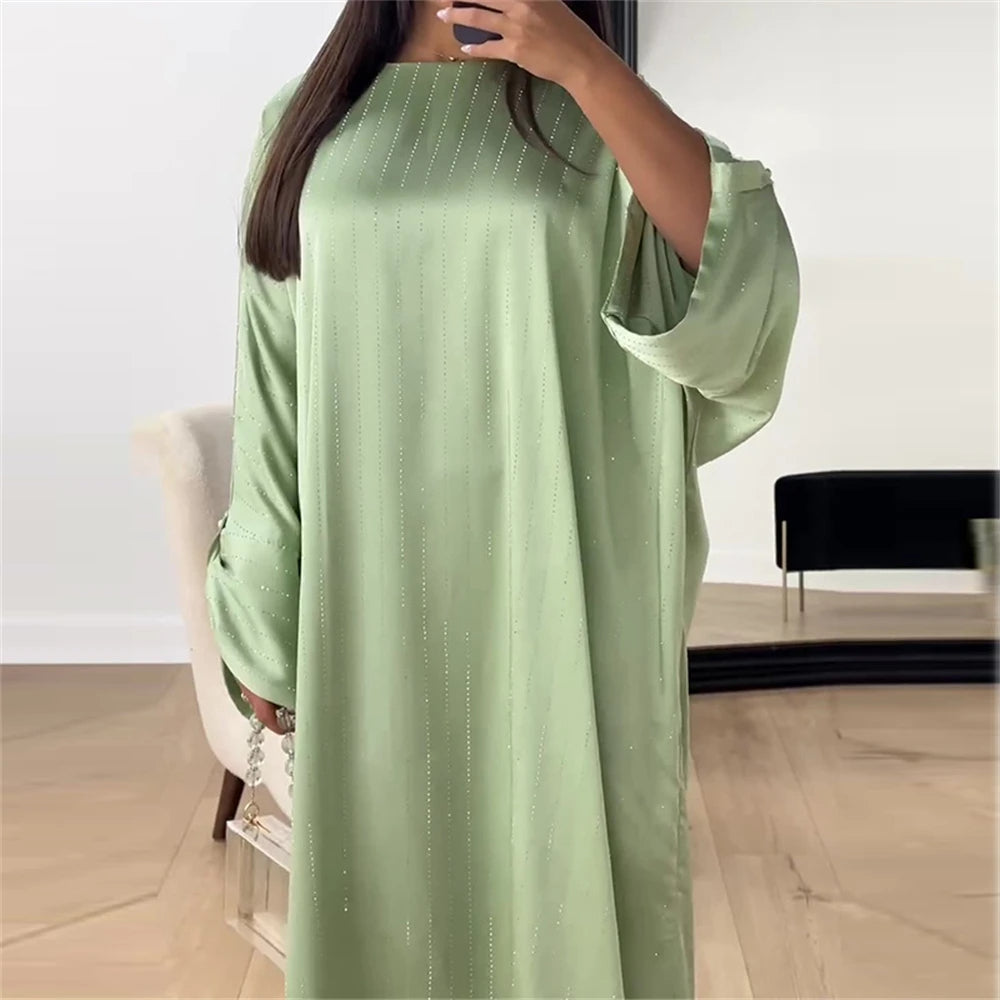 このイブニングアバヤは、流れるようなカットとエレガントなストライプデザインを組み合わせています。ゆったりとしたシルエットは絶対的な快適さを保証し、微妙なディテールが控えめにあなたの魅力を引き立てます。