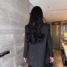 この黒いジャケットは、繊細な輝きを添えた現代的なエレガンスを体現しています。きらめくディテールがあなたのスタイルに洗練された印象を与え、決して過剰になりません。シックな夜や洗練されたプロフェッショナルなルックに最適で、控えめさと輝きを兼ね備えています。
