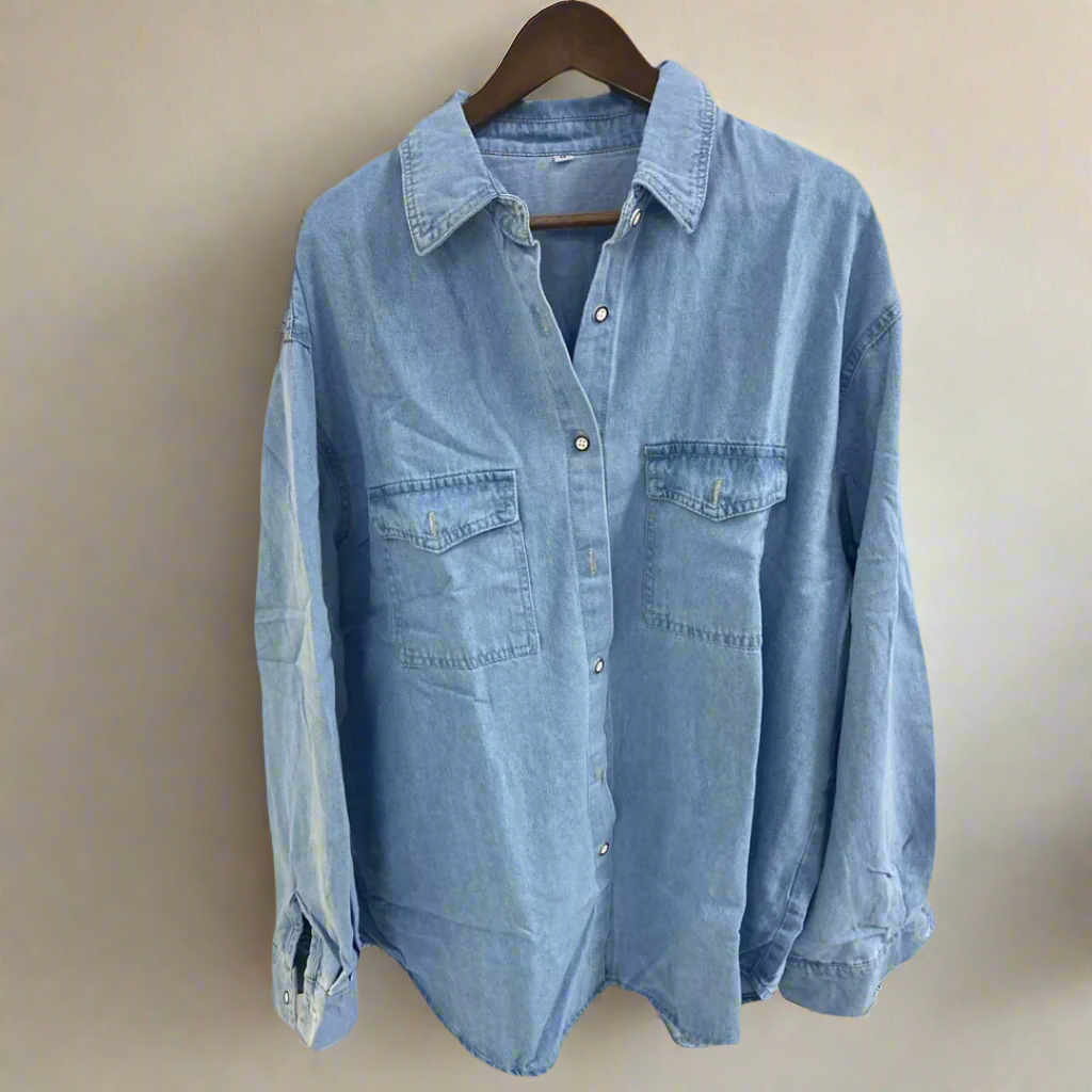 Denne denimskjorten kombinerer avslappet eleganse og praktisk bruk i hverdagen. Allsidig og trendy, den tilpasser seg alle årstider og kompletterer både et casual utseende og en mer formell antrekk. Den gjennomtenkte snittet sikrer komfort og bevegelighet, samtidig som den gir et moderne og velstelt utseende.