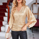 Céline | Glamour Blouse – Uitlopende Mouwen En Sprankelende Details