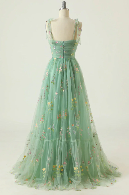 تتميز هذه الفستان بوجود تطريز زهري دقيق على التول. متوفر بنسختين قصيرة وطويلة، وهو مثالي للمناسبات الخاصة والخروجات الصيفية.