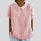 Această bluză cu mâneci scurte pentru femei este ideală pentru zilele de vară. Disponibilă în mai multe culori și mărimi, se potrivește tuturor tipurilor de siluetă. Designul său simplu și elegant o face un element esențial în garderoba dumneavoastră.