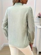 Această bluză prezintă un model cu carouri atemporal, accentuat de un detaliu elegant sub formă de fundă. Mânecile lungi o fac ideală pentru toate anotimpurile. Ușor de asortat, se potrivește atât pentru ocazii casual, cât și profesionale.