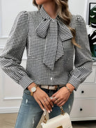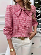 Cézanne | Bluză cu Carouri și Nod Lavallière Elegant