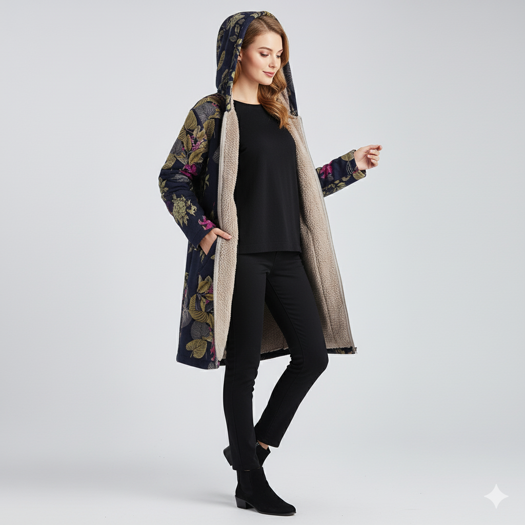 VARFÖR VÄLJA DAMVINTERJACKAN MED HUVA — MJUK VÄRME & BLOMMÖNSTER?